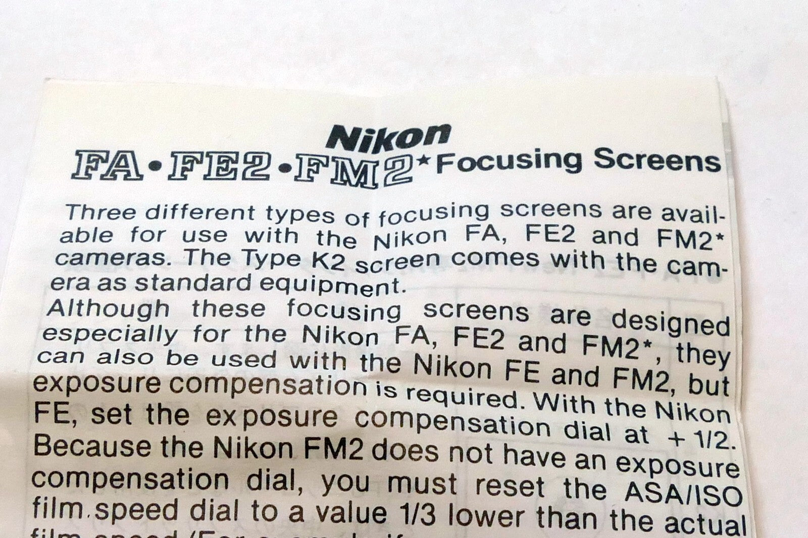 Nikon FA FE2 FM2 Focusing Screen System Brochure Reference Guide camera -