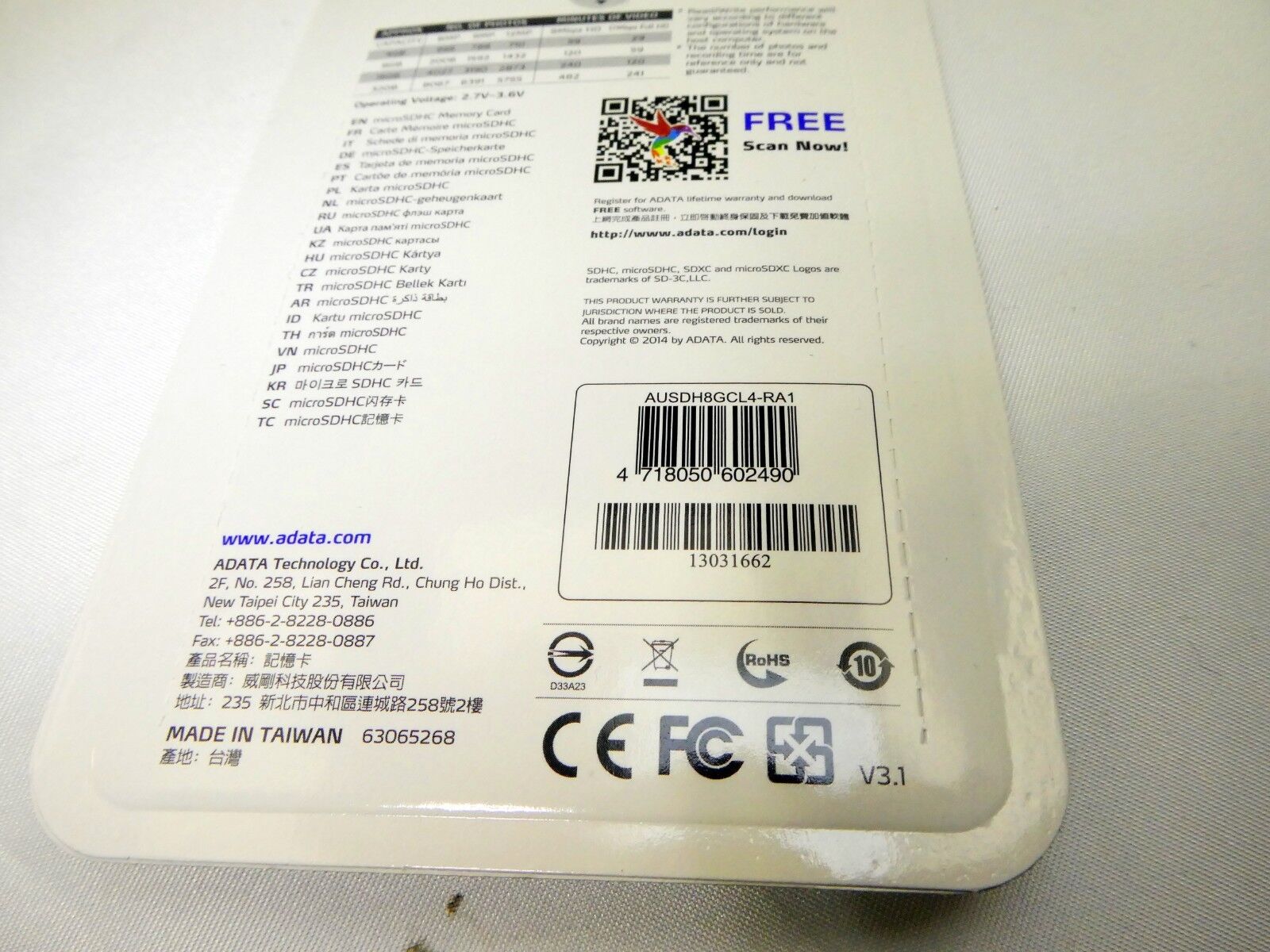 ADATA Micro 8GB SDHC Card with SD adapter AUSDH8GCL4-RA1 memory card camera Sony