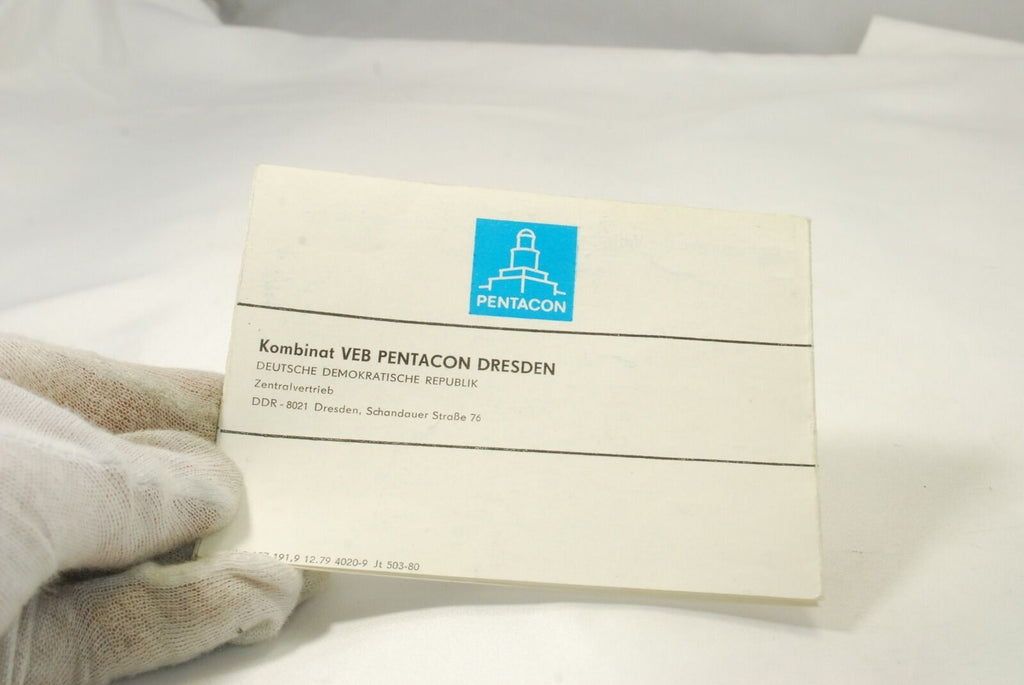 Pentacon Booklet 7219023 For sale is Pentacon warranty card. 7219023. I would rate it at 8 out of 10. It is in good condition, no pages missing. Good looks.