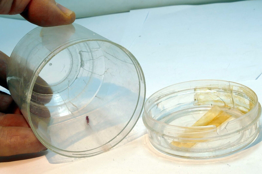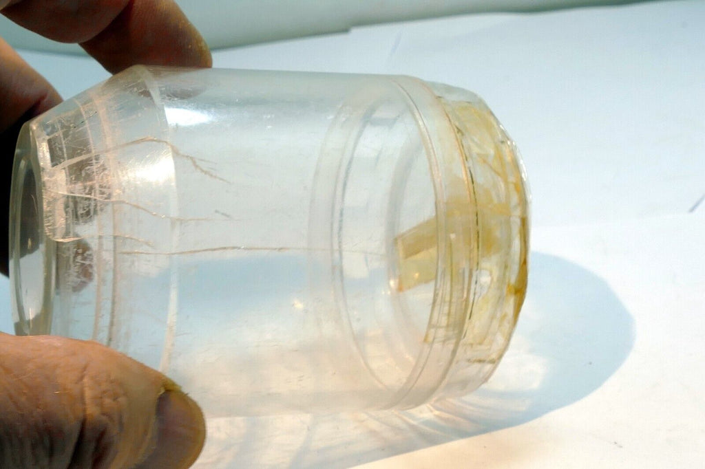 Case is in poor condition. I see some scratches and cracks. It has at least 10-12 cracks on the front. But it still holds it's shape. Please note that this is a vintage item, made in 1940-50's. So it looks like a 70 year old case. .
